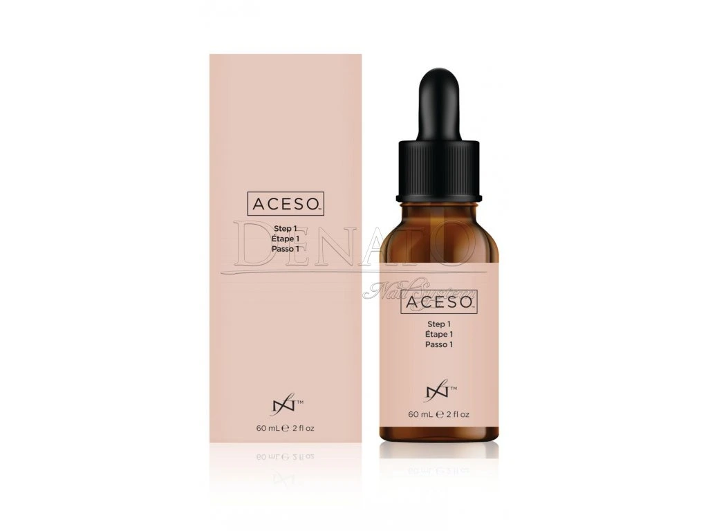 ACESO STEP 1 ma konsystencję zbliżoną do wody, dzięki czemu łatwo przenika przez płytkę paznokcia do łożyska, gdzie działa bezpośrednio. Nakłada się go na powierzchnię i/lub pod płytkę paznokcia.