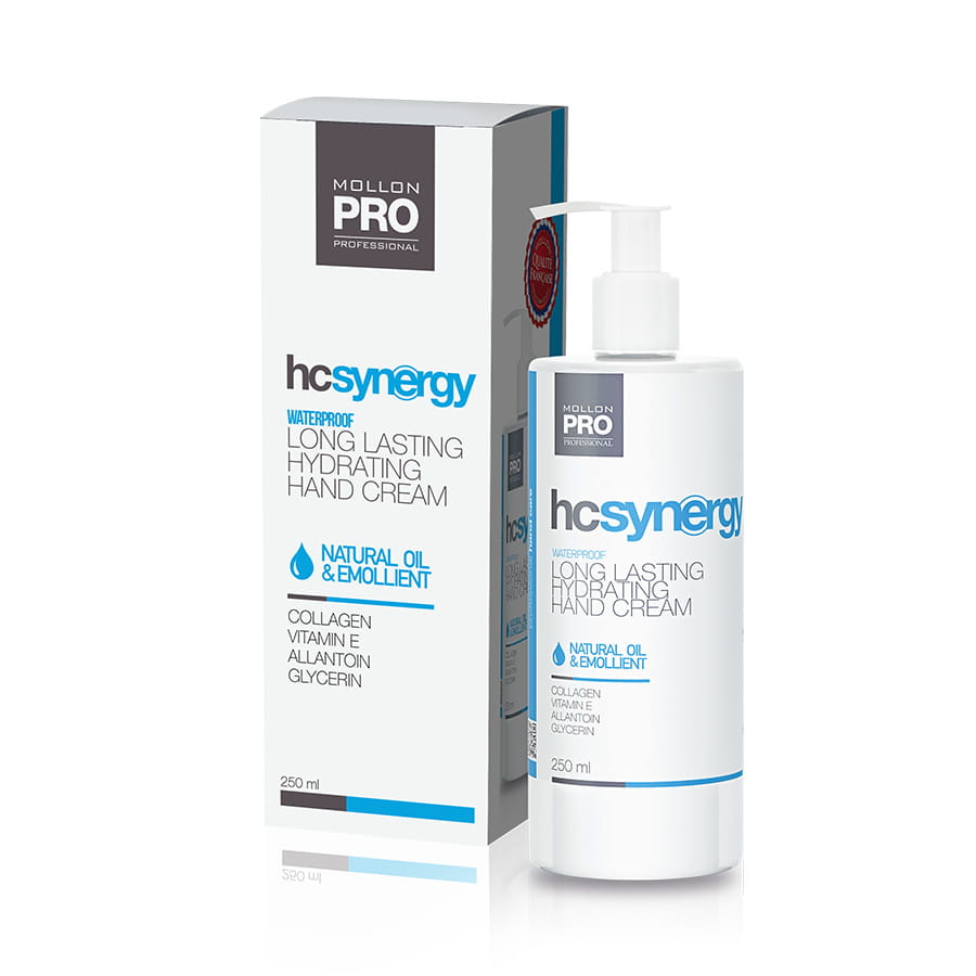 HC SYNERGY LONG LASTING Mollon PRO to profesjonalny, wodoodporny krem do pielęgnacji dłoni i paznokci. Profesjonalny, wodoodporny krem o długotrwałym działaniu nawilżającym, przeznaczony do codziennej pielęgnacji dłoni i paznokci.